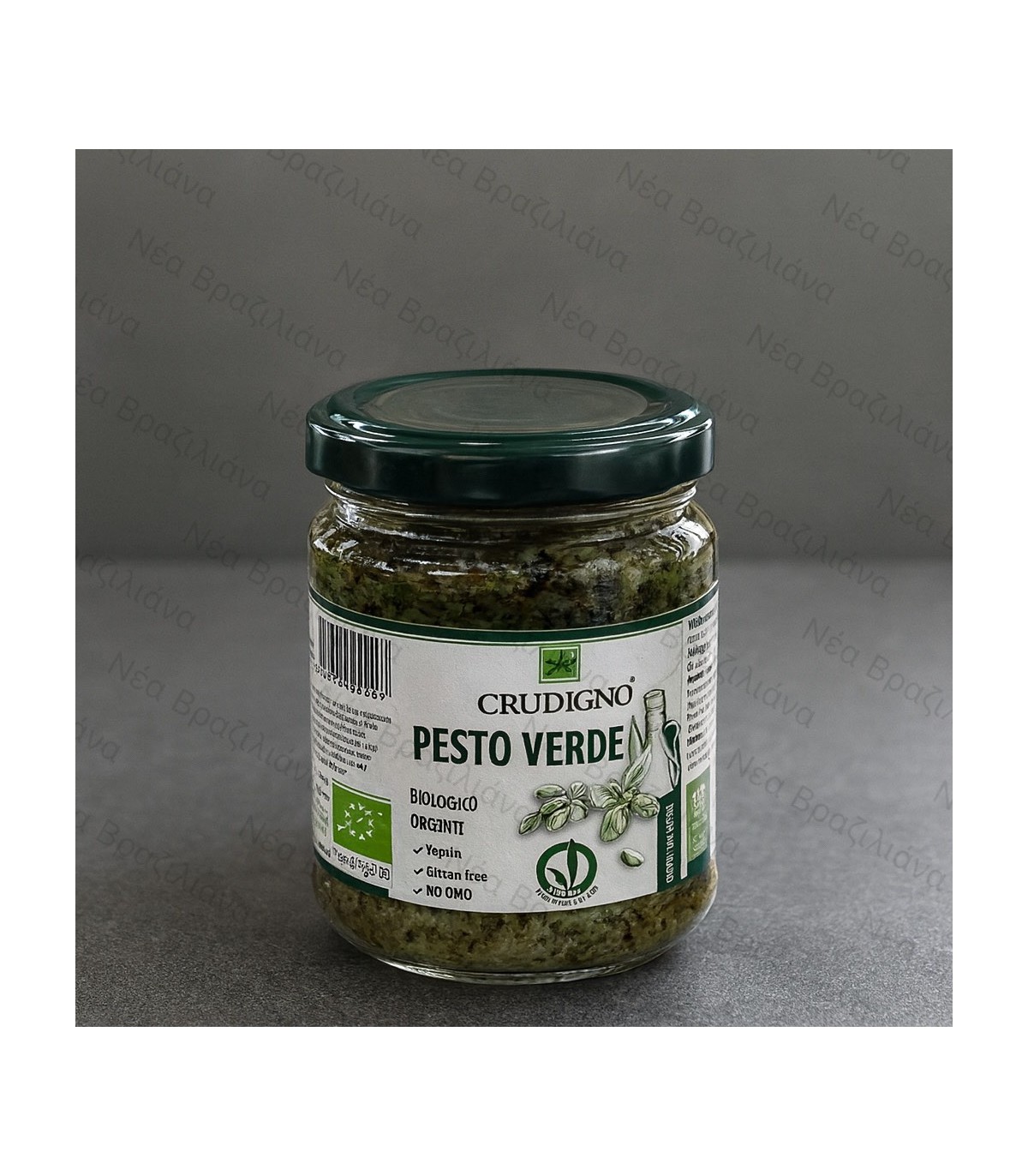 Το πράσινο πέστο είναι από τις πιο γνωστές σάλτσες ζυμαρικών στον κόσμο.Το βιολογικό πράσινο πέστο Crudigno έχει φρέσκια και λεπτή γεύση, πλόυσια επίγευση και μπορεί να χρησιμοποιηθεί τόσο ως καρύκευμα για ζεστά και κρύα πρώτα πιάτα, όπως μακαρόνια, μινεστρόνι ή πένες, ή αλείμμα σε σάντουιτς ή μπρουσκέτες, καθώς και σε ελαφριά τυριά.