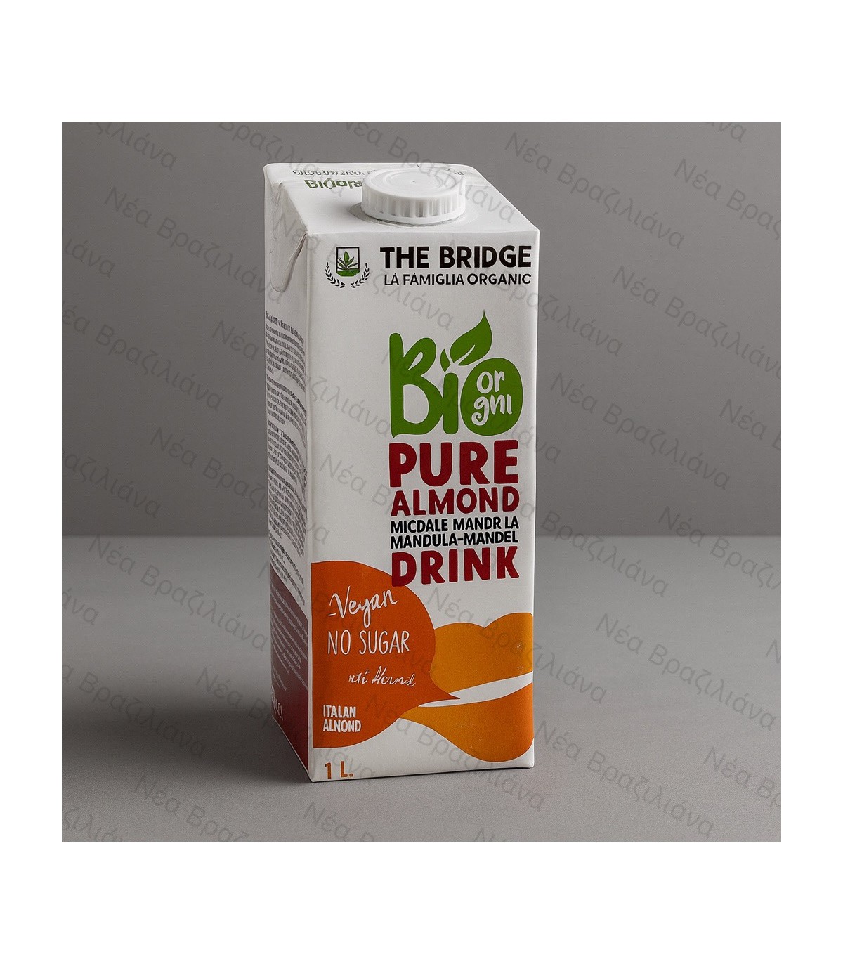 Βιολογικό ρόφημα αμυγδάλου 6% χωρίς ζάχαρη από την The Bridge.Ιδανικό για τα δημητριακά σας,τα smoothies σας  ή σκέτο ως ένα γευστικό ρόφημα.Περιέχει νερό πηγής χωρίς προσθήκη ζάχαρης,χωρίς λακτόζη και γλουτένη.100% βιολογικό και vegan.