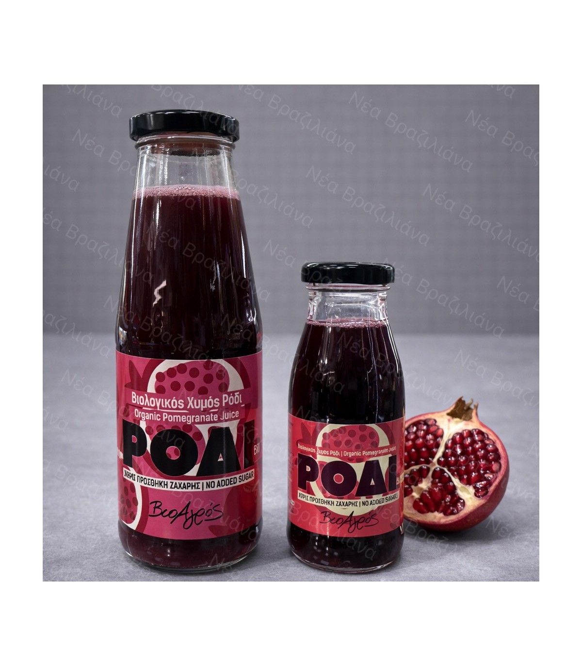 Ανακαλύψτε την αγνότητα της φύσης με τον βιολογικό, 100% ελληνικό χυμό ροδιού, φτιαγμένο από επιλεγμένα ρόδια και χωρίς προσθήκη ζάχαρης. Μια αναζωογονητική, πλούσια σε θρεπτικά συστατικά απόλαυση, κατευθείαν από τους ελληνικούς οπωρώνες στο ποτήρι σας. Η υγιεινή επιλογή που περιμένατε!