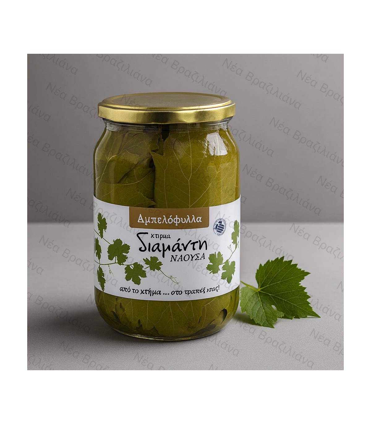 Τρυφερά αμπελόφυλλα που συλλέγονται την άνοιξη από ελληνικά αμπέλια, συσκευάζονται προσεκτικά σε βαζάκια & παστεριώνονται την ίδια ημέρα.