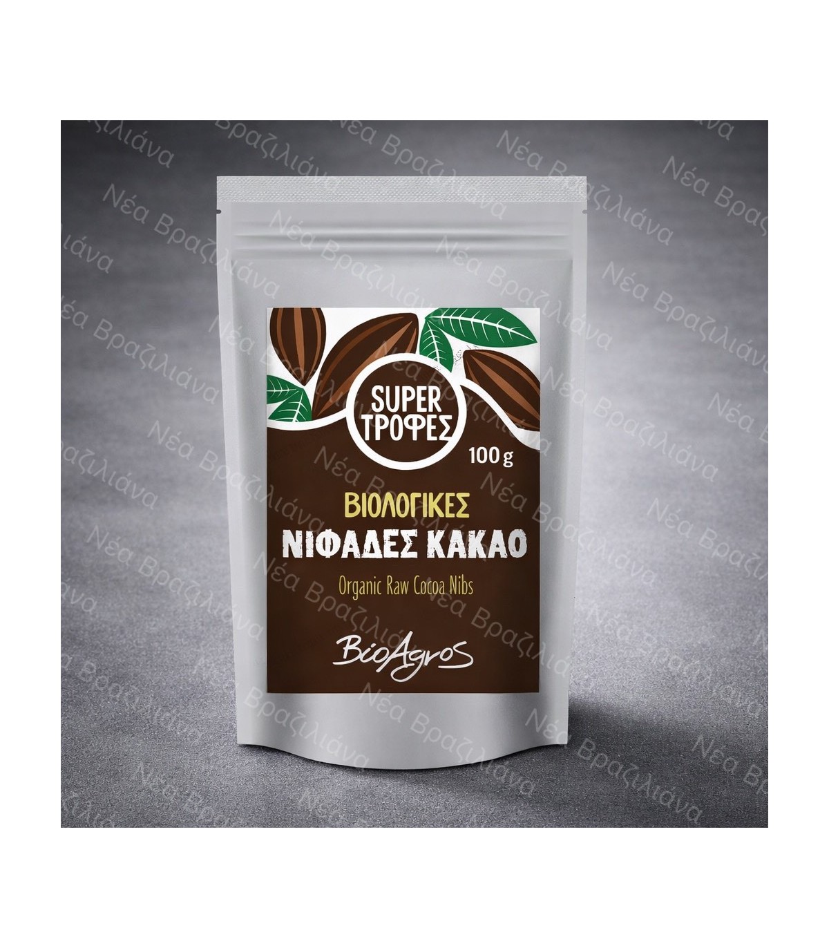 Οι νιφάδες κακάο ή Cacao Nibs είναι σπασμένα μικρά κομμάτια από ψημμένα φασόλια κακάο που έχουν καθαριστεί. Το κακάο σε αυτή τη θρυμματισμένη μορφή έχει πλούσια  γεύση και τραγανή αίσθηση. Συνδυάστε το με γιαούρτι, ξερά φρούτα ή το πρωινό σας μούσλι.