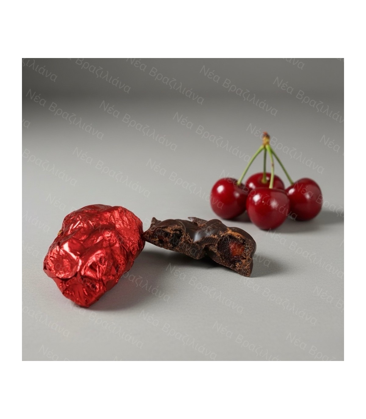 Τραγανά κεράσια, σιροπιασμένα και βουτηγμένα σε κουβερτούρα.
