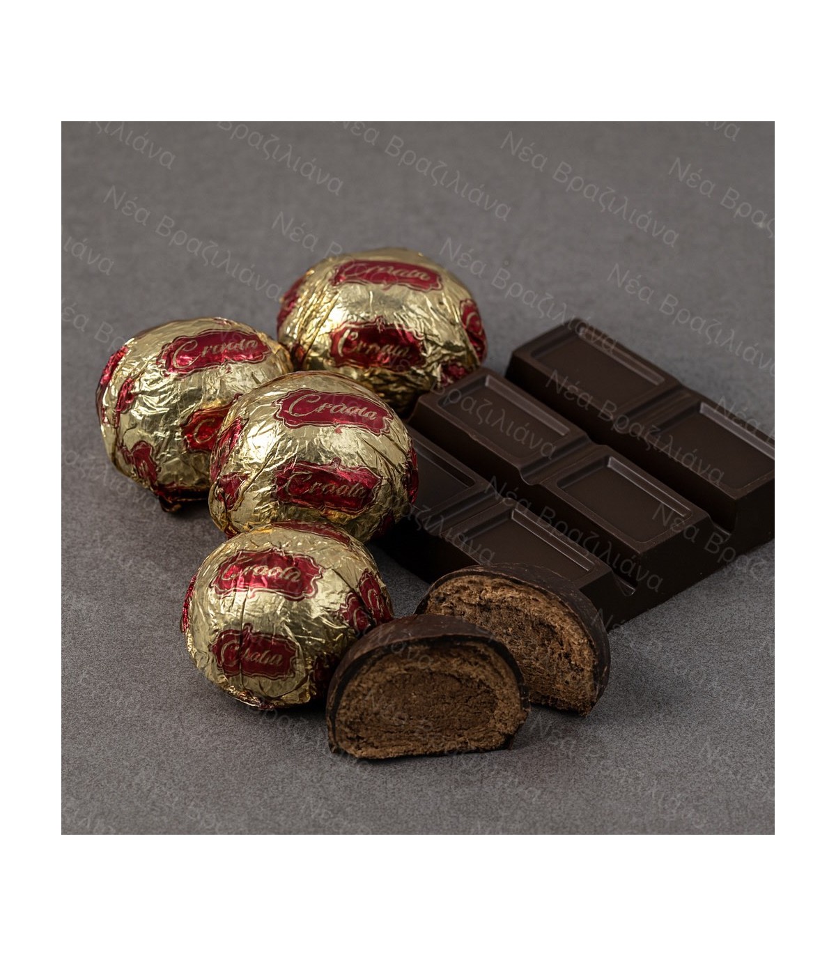 Φρεσκοψημένο στρόγγυλο παντεσπάνι γεμισμένο με πραλίνα και επικάλυψη κουβερτούρας.