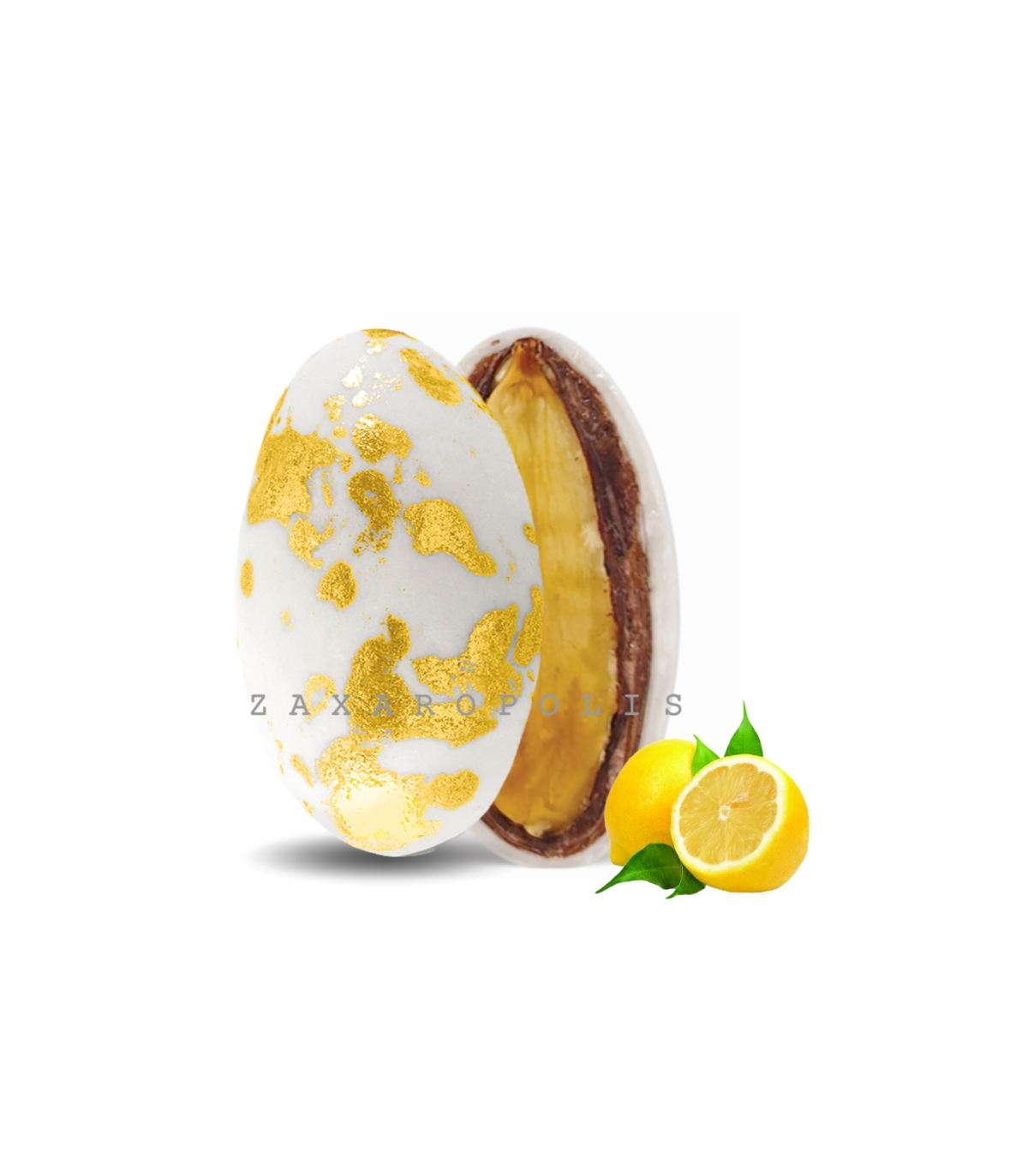 Ολόκληρο καβουρδισμένο αμύγδαλο & λευκή σοκολάτα και με λεπτή επικάλυψη ζάχαρης.