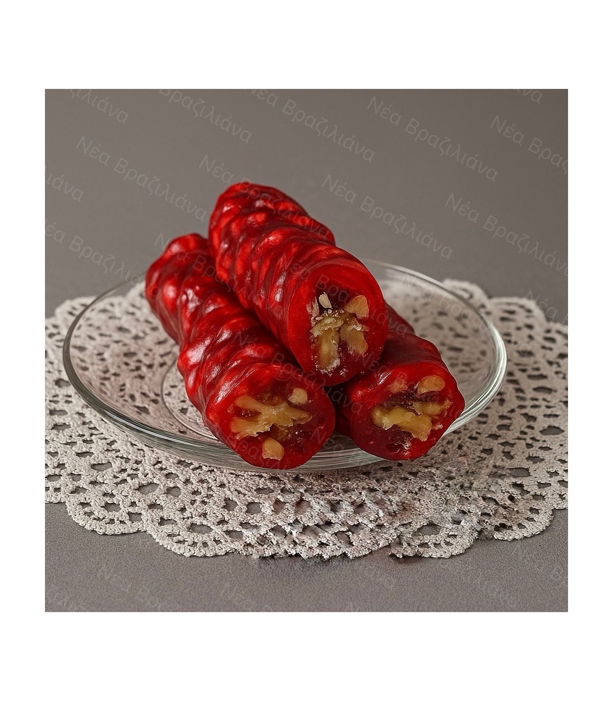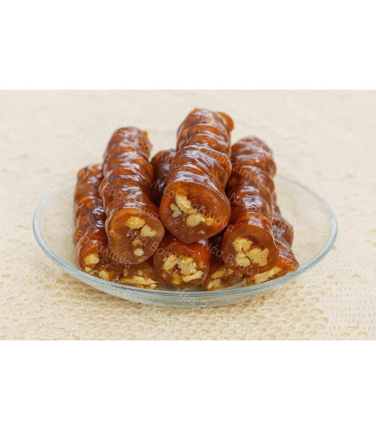 Καρύδια περασμένα σε σπάγγο, βουτηγμένα σε λουκούμι με χυμό σταφυλιού. Γεύση Αξεπέραστη.