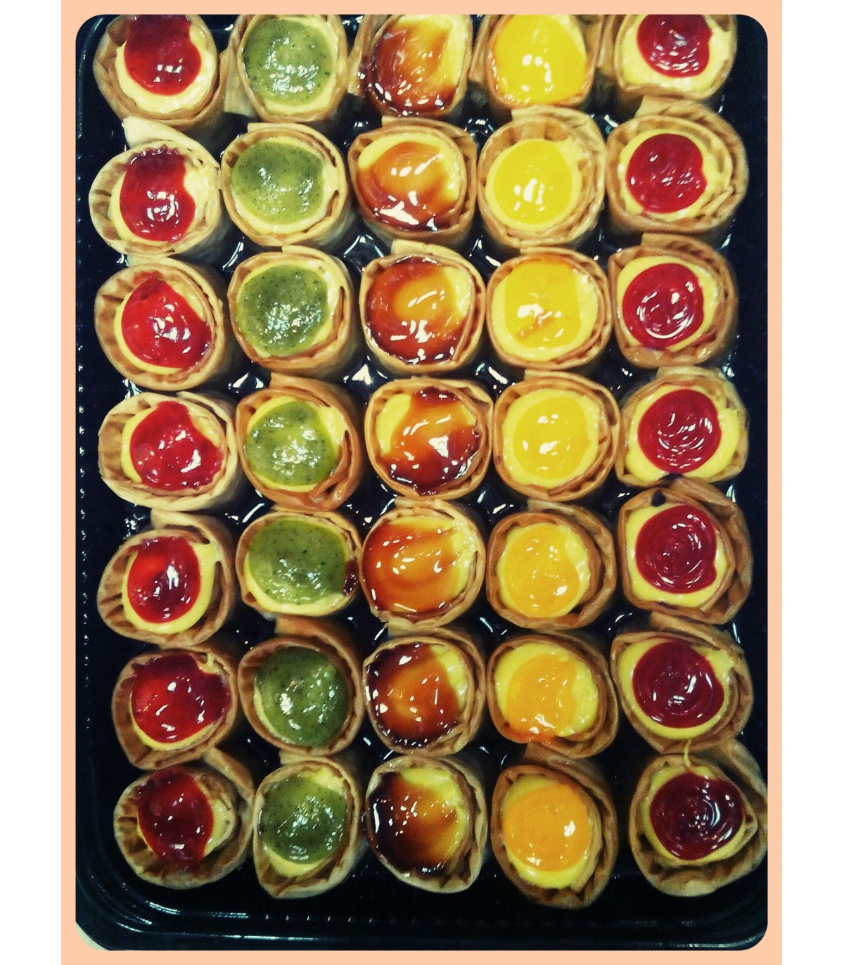 Ένα απίθανο γλύκισμα γεμάτο με λαχταριστή κρέμα, τυλιγμένη σε καλοψημένο φύλλο κρούστας και περιχυμένο με λεπτό σιρόπι -όχι παραπάνω από όσο χρειάζεται. Δένει αρμονικά η γεύση με τη γαρνιτούρα από αγριοκέρασο, ακτινίδιο, μανταρίνι, καραμέλα και βύσσινο.