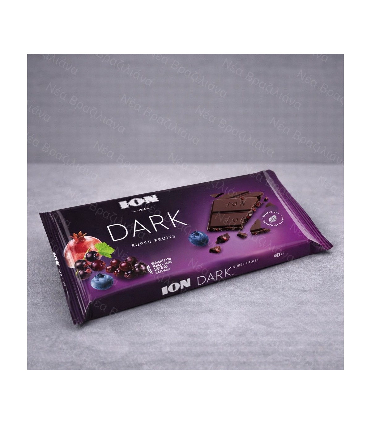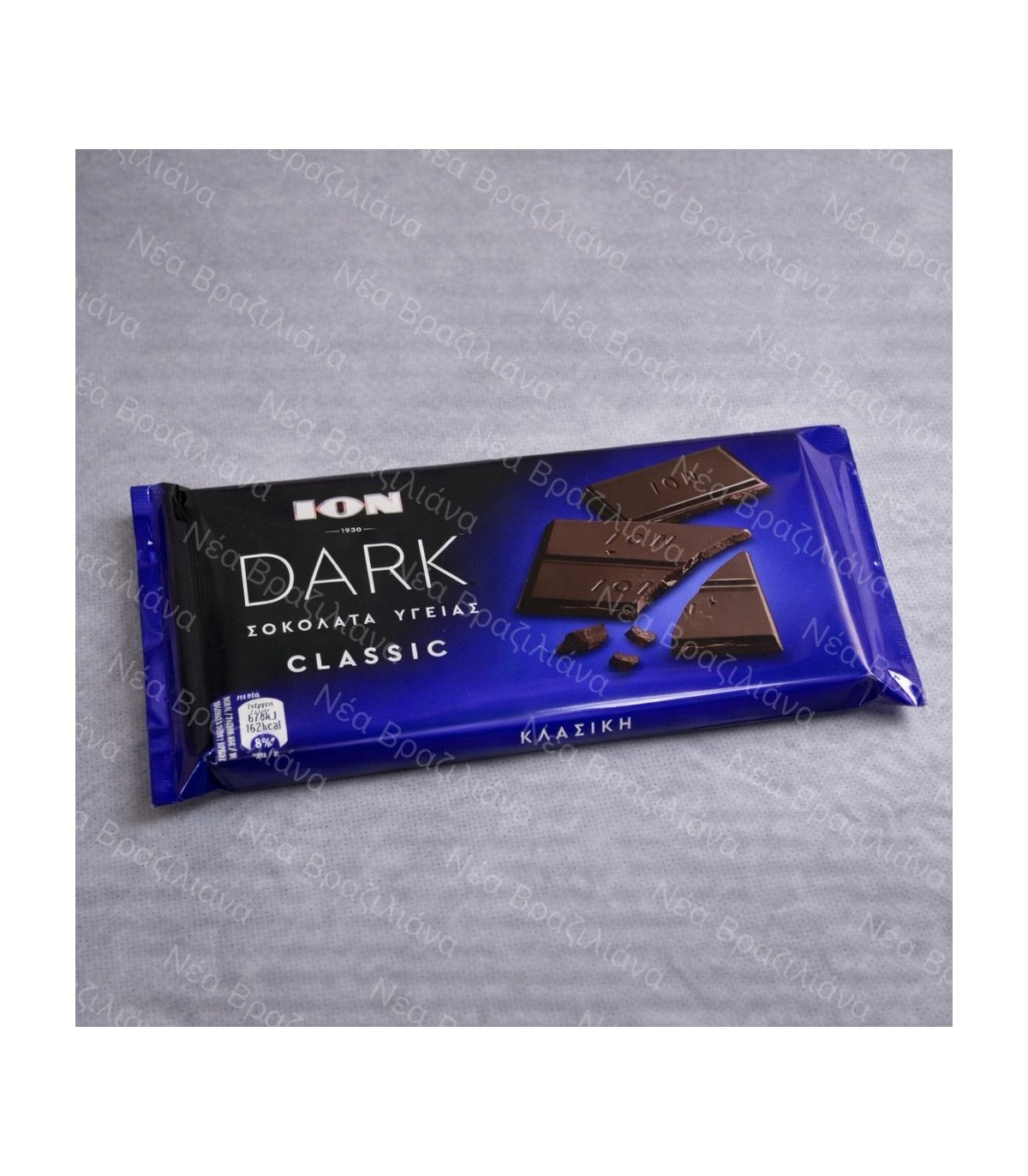 ΙΟΝ Dark κλασική, με υπέροχη γεύση κακάο από σπόρους εξαιρετικής ποιότητας από την μόνη εταιρεία στην Ελλάδα που διαθέτει όλη την παραγωγική διαδικασία της σοκολάτας, από τον σπόρο του κακάο έως το τελικό προϊόν. Μια σοκολάτα υψηλών απαιτήσεων.
